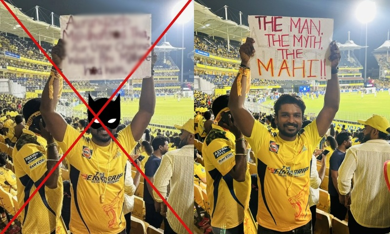 Posts from Indian users on social media platform X since March 24, 2025, circulated an image of a man holding a placard with offensive remarks against Mughal ruler Aurangzeb during a Chennai Super Kings and Mumbai Indians match in the Indian Premier League (IPL). However, the placard was edited with fake text.