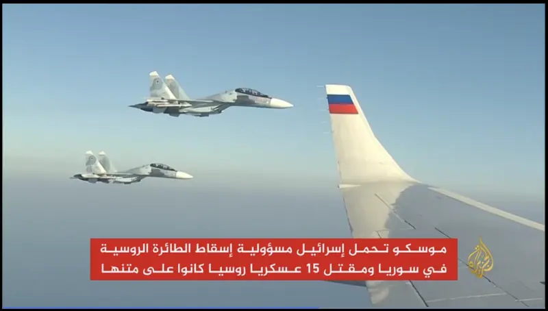 A reverse image search yielded a video by Al Jazeera Arabic dated September 23, 2018, with the title: “Russia reveals details of its plane being shot down in Syria.”
