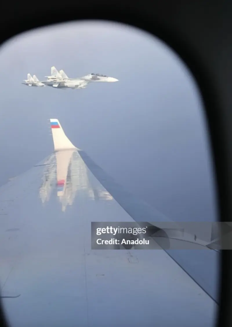 Getty Images also shared a photo showing fighter jets escorting Putin’s aeroplane. The visual is similar to that in the video.