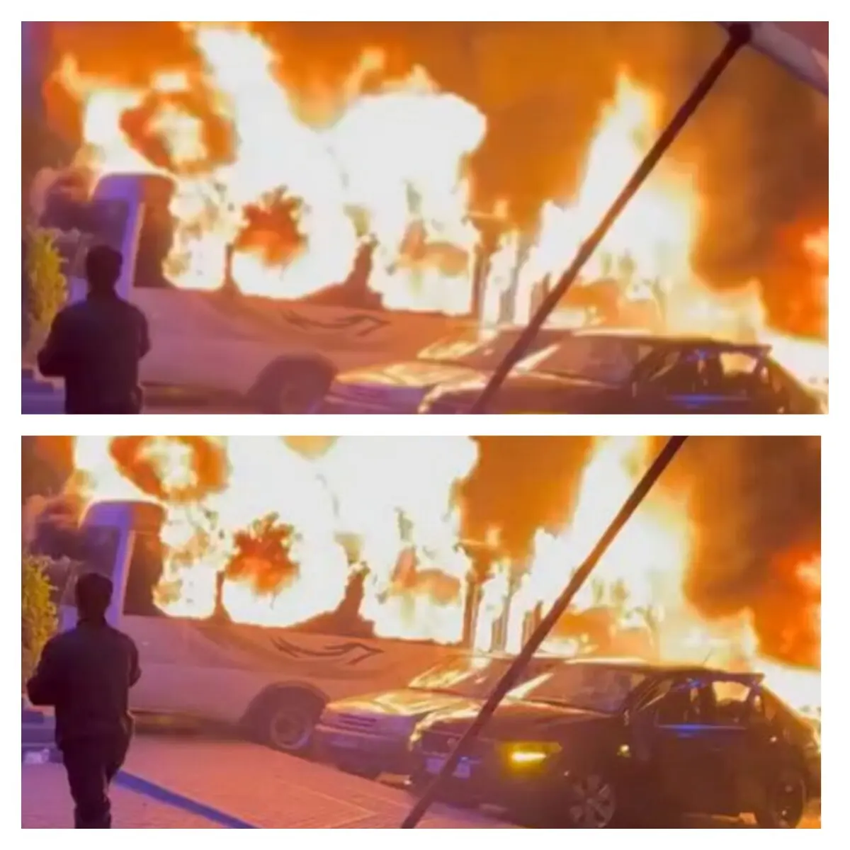 The news report featured the same burning car visible in the viral video.