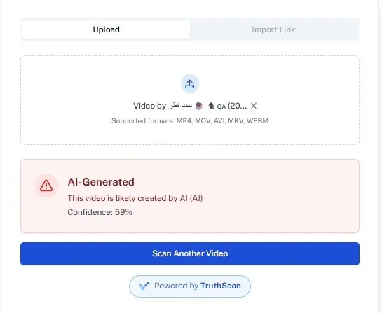 Analysing the video through AI-detection tools showed that Truth Scan gave it a score of 59pc generated via AI, while Hive Moderation flagged it as 98pc AI generated.