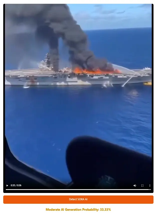Inspecting the viral clip revealed clear discrepancies in the structure of the aircraft carrier.