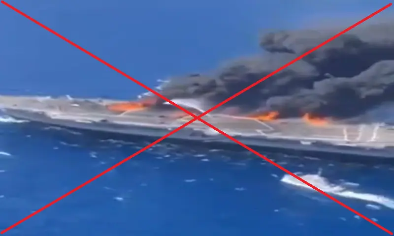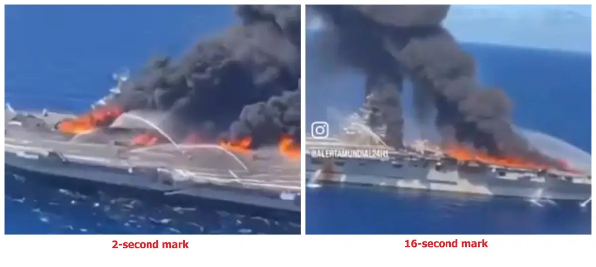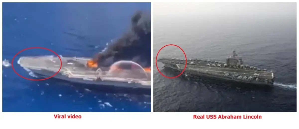This mismatch in key structural features indicates that the vessel in the viral footage does not match the actual aircraft carrier.