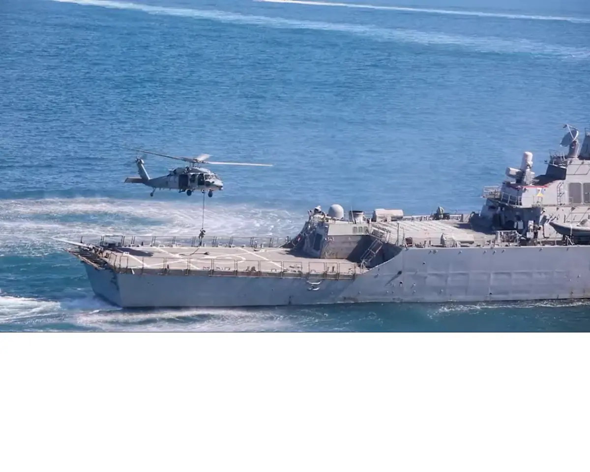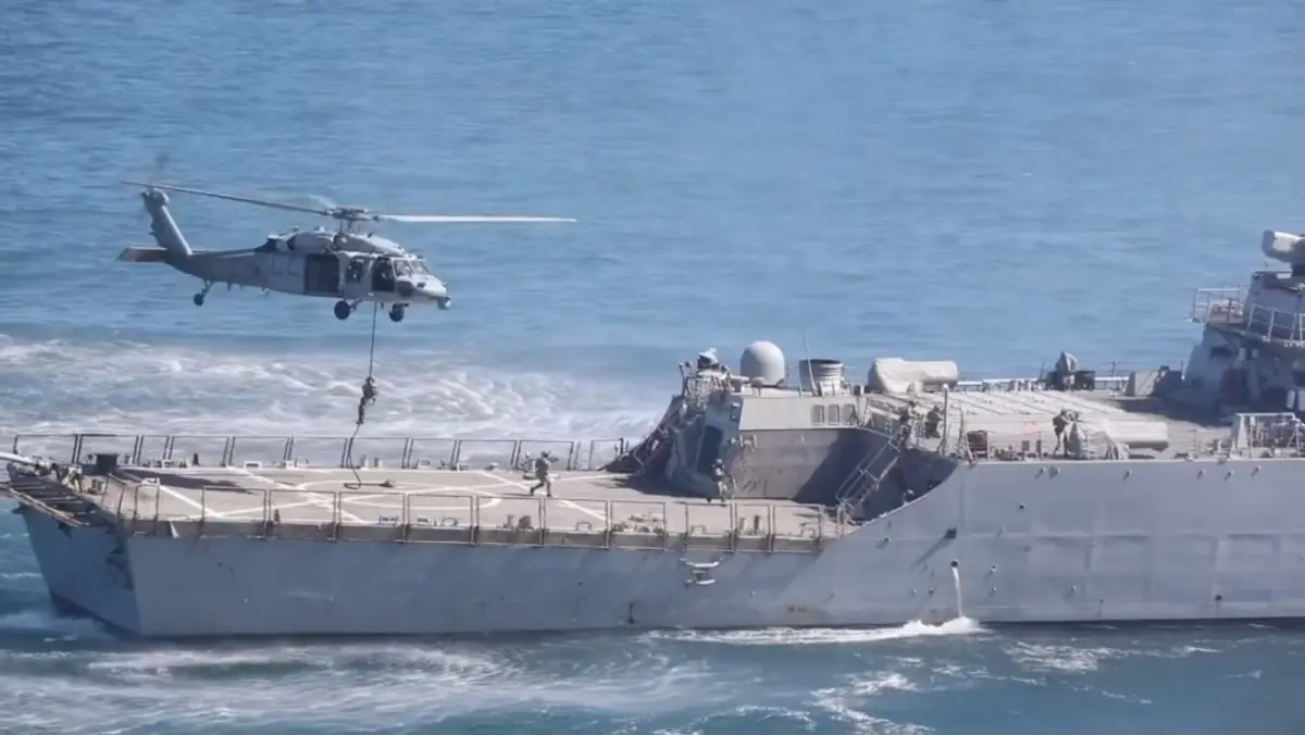 The original video is from a US naval exercise during its 250th anniversary celebrations in October 2025 and is unrelated to the current conflict.