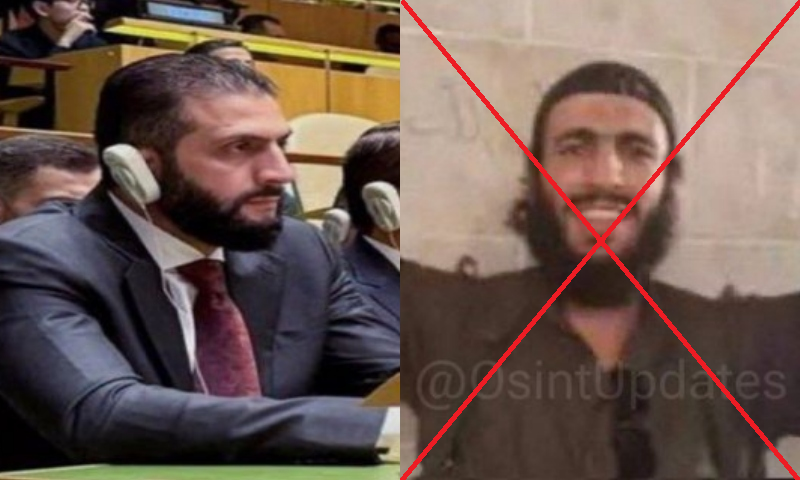 On Sept 27, an Indian user shared a collage of Sharaa at the UNGA and a person holding two severed heads, claiming it was an old image of the Syrian president.