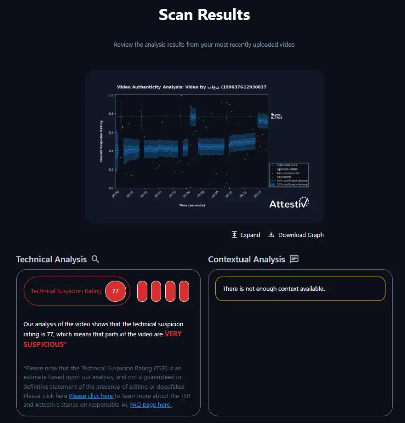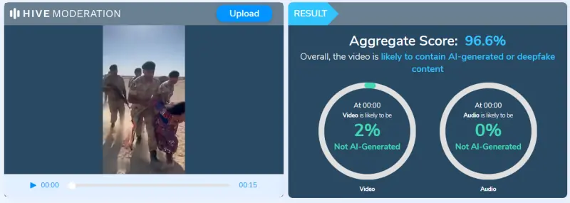 Analysing the video through forensic tools to detect any AI manipulation showed that Hive Moderation detected 96.6 per cent deepfake content in the clip, while Attestive gave it a technical suspicion rating of 77pc.