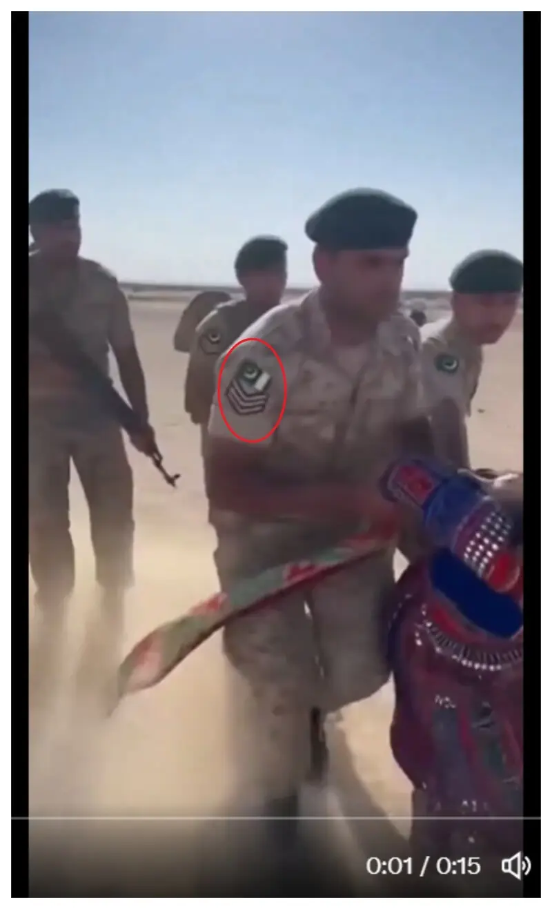 The caption read: “This video is neither of the Uighurs nor of East Turkestan nor of Sudan, but rather of the mercenary army of Pakistan that has tied the hands of a Muslim oppressed sister, which the scholars around Pakistan call the pure army. Some will now say that the video is fake, even though this one was captured by a Baloch sister, the Baloch have published this video.”