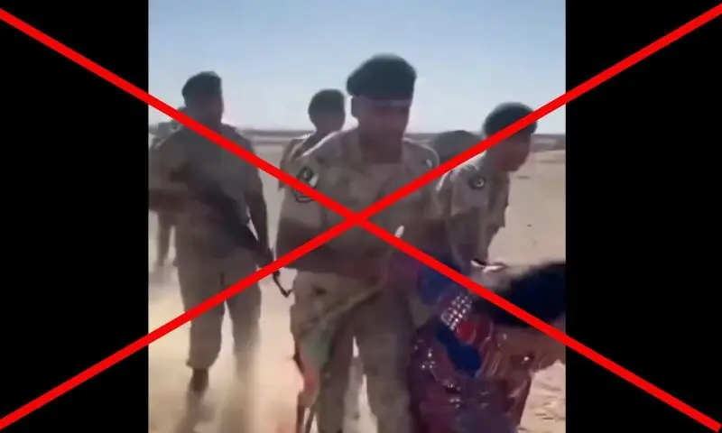 The claim that a viral video shows Pakistan Army soldiers dragging a woman is false.