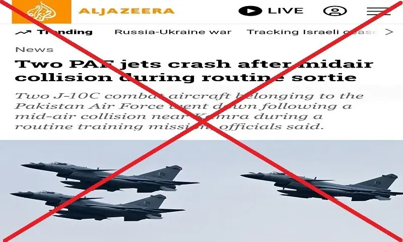 Al Jazeera did not report that two PAF jets collided mid-air; viral screenshot is fake