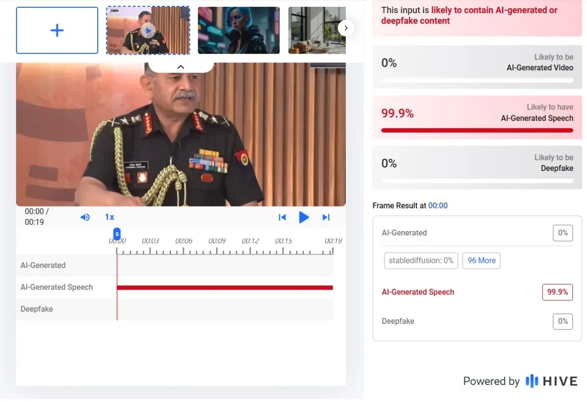 In addition, AI detection tool Hive Moderation flagged the video as 99.9pc AI-generated, indicating a high likelihood that the footage had been digitally manipulated.