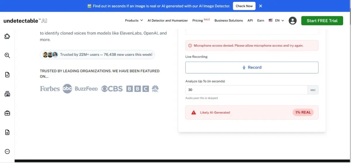 Similarly, UndetectableAI flagged the video as 99pc AI generated.